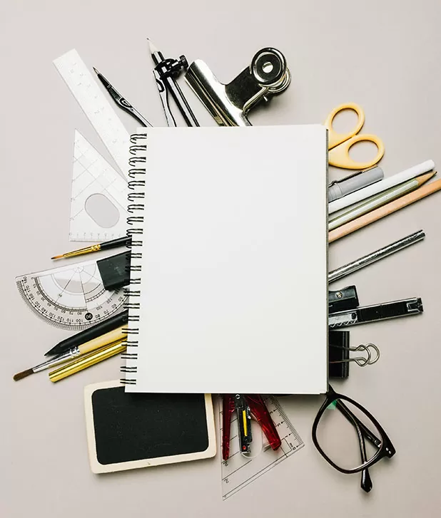 Uma lista completa de materiais escolares para todos os níveis de aprendizado.